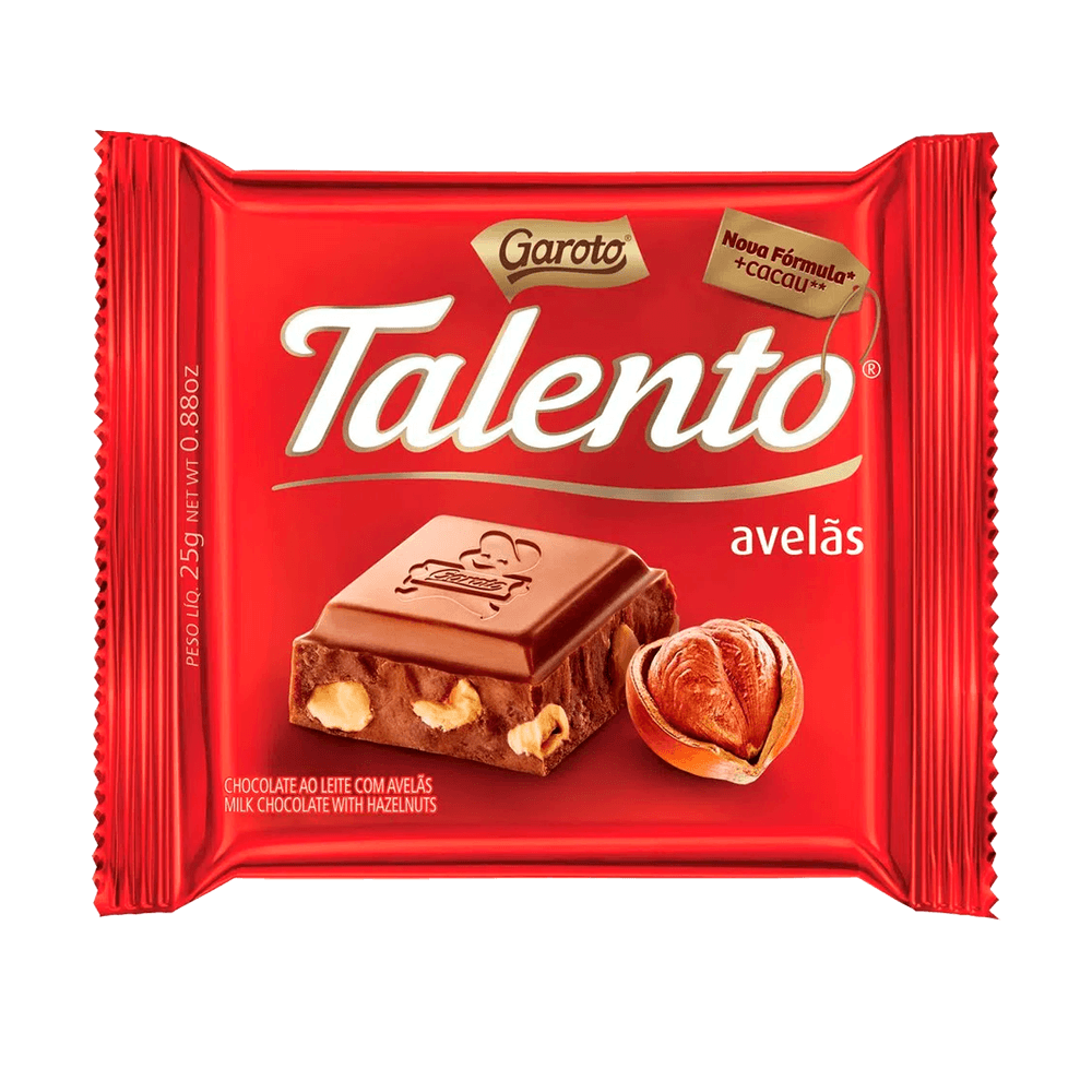 CHOCOLATE GAROTO TALENTO 25G LEITE/AVELASDe: R$ 0,00Por: R$ 3,99ou 1X de R$ 3,99Preço a vista: R$ 3,99CHOCOLATE GAROTO TABLETE Adicionar à minha Lista de Compras ComprarProduto Esgotado
