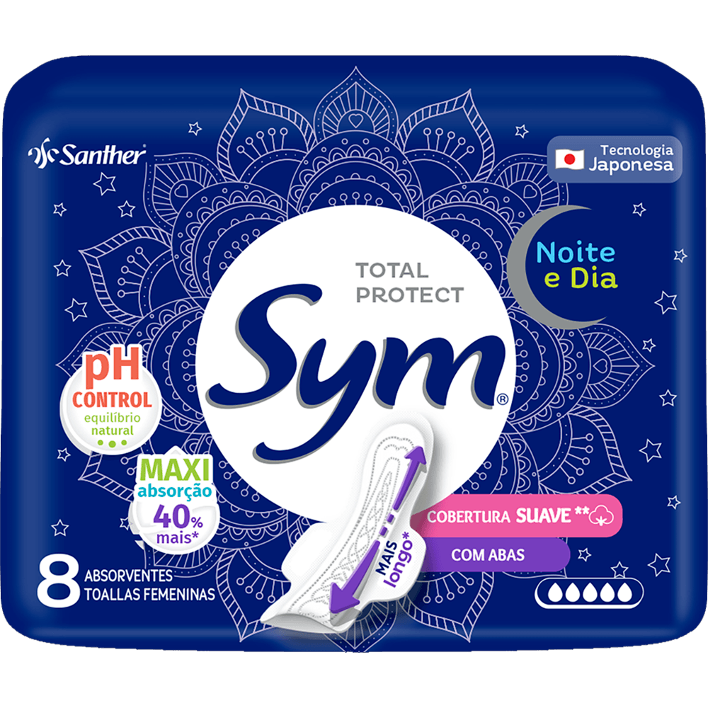 ABSORVENTE SYM NOITE/DIA C/8UN C/BAS SUAVEDe: R$ 0,00Por: R$ 7,99ou 1X de R$ 7,99Preço a vista: R$ 7,99ABSORVENTE SYM COM ABAS Adicionar à minha Lista de Compras ComprarProduto Esgotado