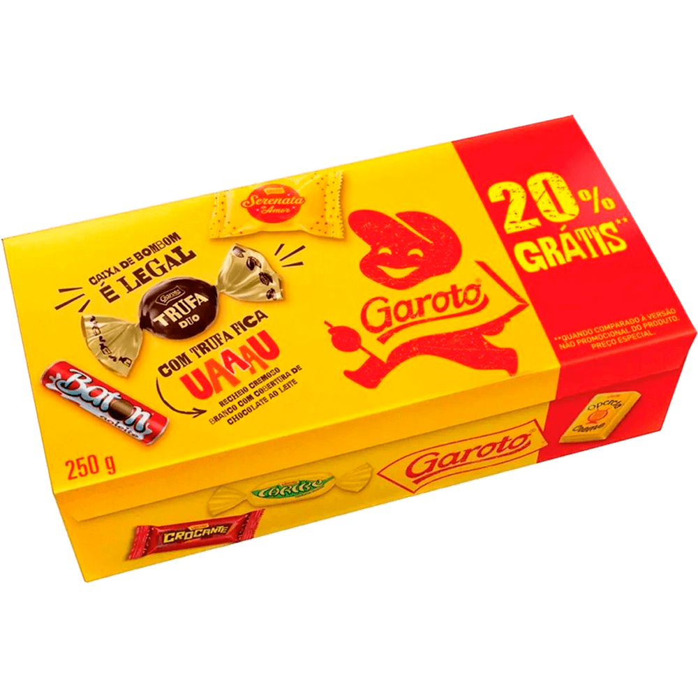 BOMBOM GAROTO SORTIDO CAIXA 250G 20% GRATISDe: R$ 0,00Por: R$ 13,99ou 1X de R$ 13,99Preço a vista: R$ 13,99GAROTO SORT. 250G 20% Adicionar à minha Lista de Compras ComprarProduto Esgotado
