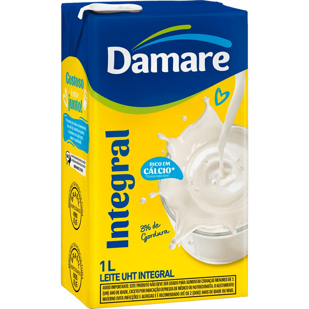 LEITE LONGA VIDA DAMARE 1L INTEGRALDe: R$ 0,00Por: R$ 4,49ou 1X de R$ 4,49Preço a vista: R$ 4,49LEITE DAMARE UHT 1L INTE Adicionar à minha Lista de Compras ComprarProduto Esgotado